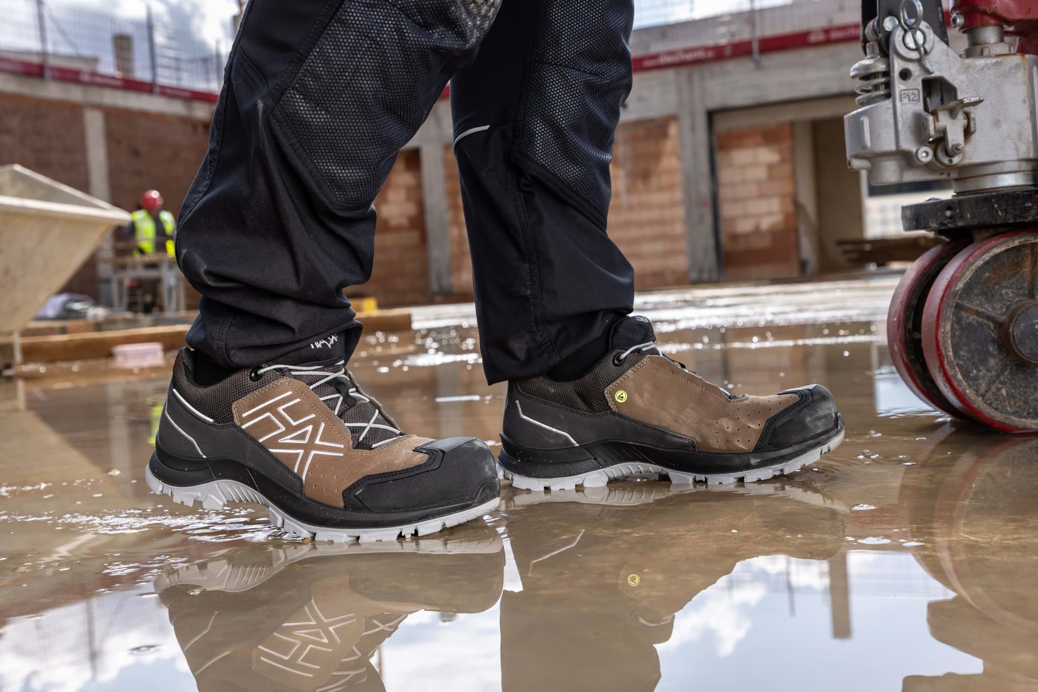 Der HAIX Black Eagle Safety 200 M T brown ist ein leichter und atmungsaktiver S1PS Sicherheitsschuh für den Innenbereich und warme Arbeitsumgebungen. Die Kombination aus Mikrofaser und Textil sorgt für hohe Atmungsaktivität und Strapazierfähigkeit. Metallfreier Durchtrittschutz, Composite-Zehenschutzkappe, ESD-Ausstattung sowie eine rutschhemmende Laufsohle bieten zuverlässigen Schutz und hohen Tragekomfort im Arbeitsalltag.