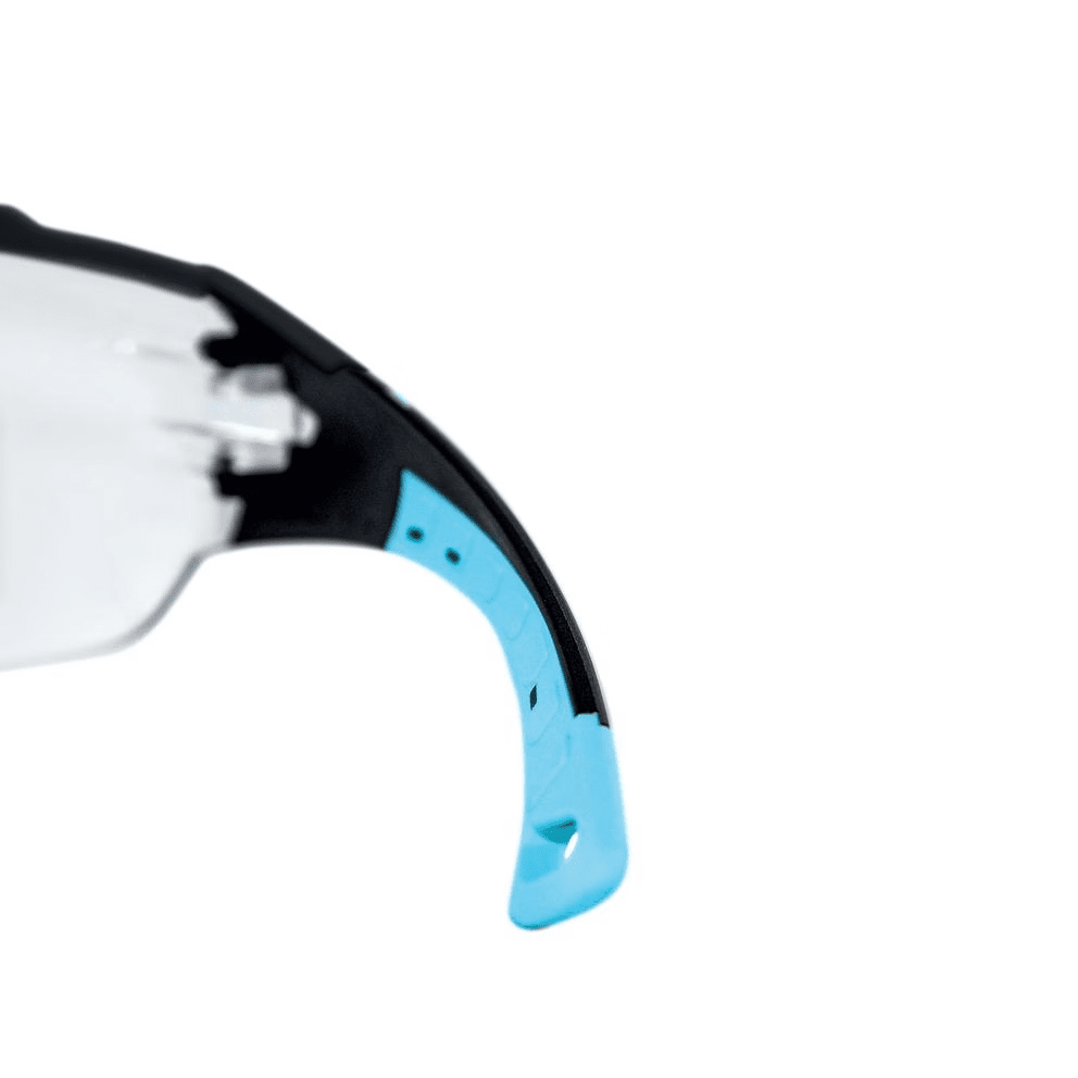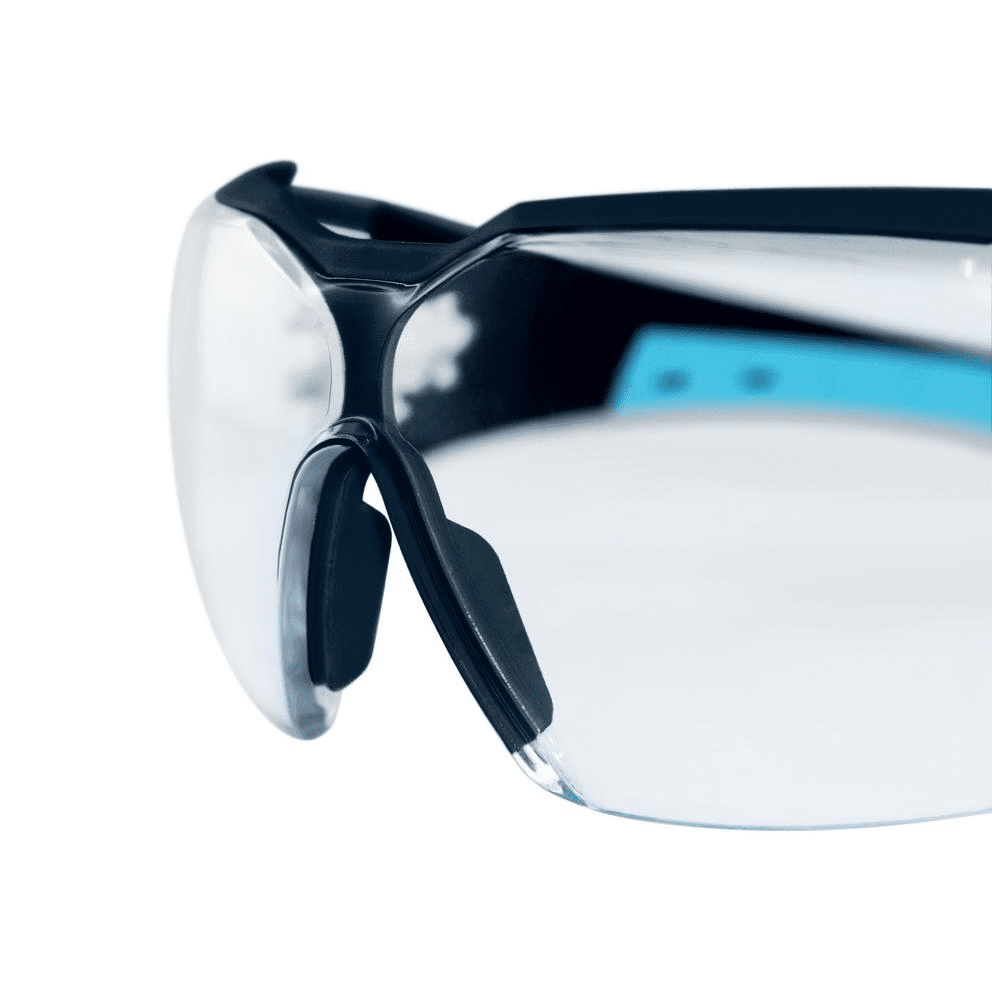 Dank der schlanken Bügelgeometrie lässt sich die Schutzbrille problemlos mit Gehörschutzkapseln, Helmen oder Anstoßkappen kombinieren. Die uvex duo component Technologie sowie die X-Twist-Bügel-Technologie gewährleisten einen sicheren, rutschfreien Sitz ohne Druckstellen – auch bei längeren Tragezeiten.